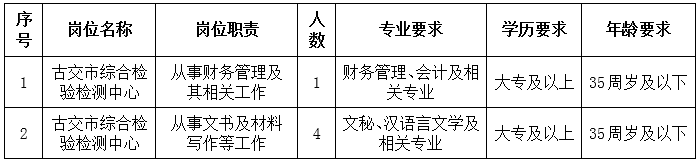 根据古交市市场监督管理局用人需求,太原青创面向社会公开为古交市市场监督管理局招聘5名业务工作人员。