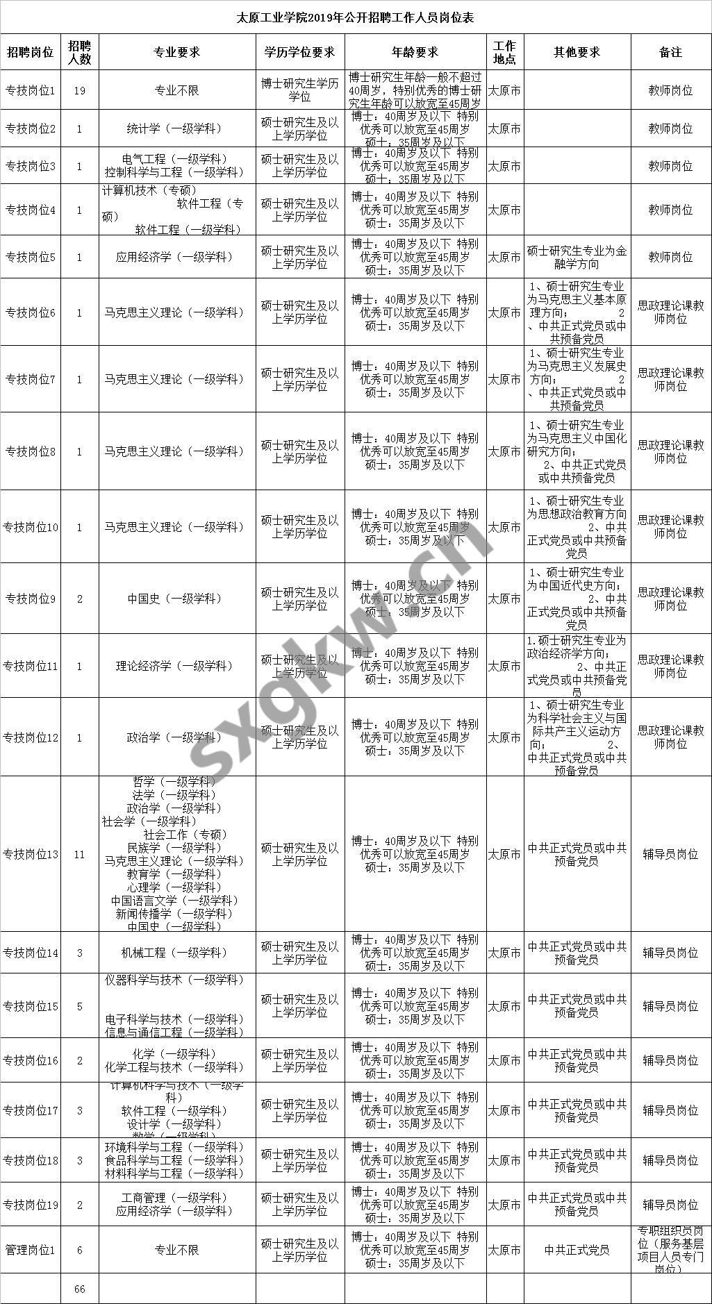 附件:1.太原工业学院2019年公开招聘工作人员岗位表